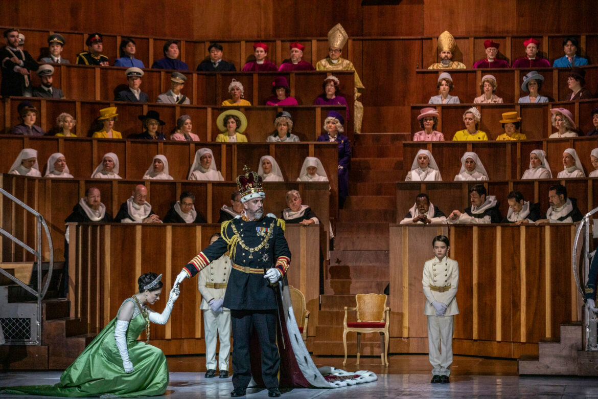 Les seconds rôles sont également à l’honneur : Alexander Tsymbalyuk est un Grand Inquisiteur glaçant et profond, Sava Vemić convainc en frère mystique, et Manase Latu se distingue par sa diction exemplaire en Comte de Lerme. Marine Chagnon, issue de la troupe lyrique de l’Opéra de Paris, incarne un Thibault d’une grande clarté. La distribution s’avère ainsi homogène, chaque artiste contribuant à la solidité de cette fresque dramatique.