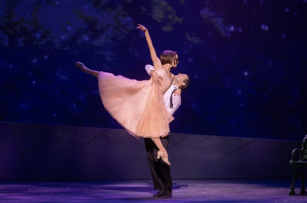 Les chanteurs-danseurs-acteurs impressionnent par la souveraineté de leur art. Robbie Fairchild, en Jerry Mulligan, incarne un Américain à Paris rêveur et déterminé. À ses côtés, Anna Rose O’Sullivan est une Lise Dassin d’une légèreté aérienne, aussi éblouissante dans la danse que dans la justesse et l’élan de son chant. Max von Essen prête à Henri Baurel — fiancé de Lise désigné par les familles — une intensité tourmentée et profondément humaine. Ensemble, ils forment un trio d’une justesse émotionnelle saisissante, dans lequel chacun peut se reconnaître et auquel il devient immédiatement naturel de s’attacher. Etai Benson campe avec conviction Adam Hochberg, le musicien qui noue une amitié sincère avec Jerry. Emily Ferranti, en Milo Davenport, riche mécène américaine, interroge avec finesse, tout comme Adam, le sens de l’amour et de la solitude ; leurs scènes se distinguent par une acuité rare. Scott Willis et Rebecca Eichenberger déploient un sens comique savoureux en Monsieur et Madame Baurel. Quant aux danseurs d’ensemble et aux swings, ils livrent des chorégraphies d’une synchronisation et d’une exigence physique impressionnantes, culminant dans le ballet final sur l’intégralité du poème symphonique An American in Paris.